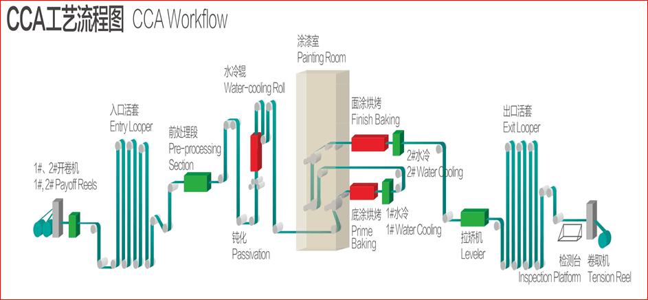 鍍鋁鋅鋼卷的耐蝕性雖強(qiáng),但為了改變單調(diào)、無變化的表面,在鍍鋁鋅鋼卷表面經(jīng)涂裝、烘烤等作業(yè),生產(chǎn)出美麗、耐蝕性更高的鍍(鋁)鋅烤漆鋼卷。